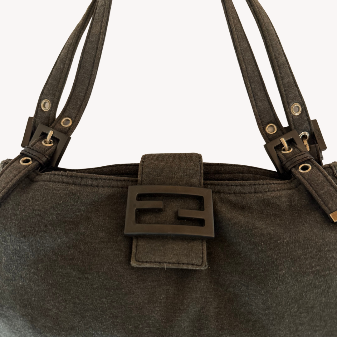 Fendi: Vintage Grey Jersey Double Strap Baguette Bag