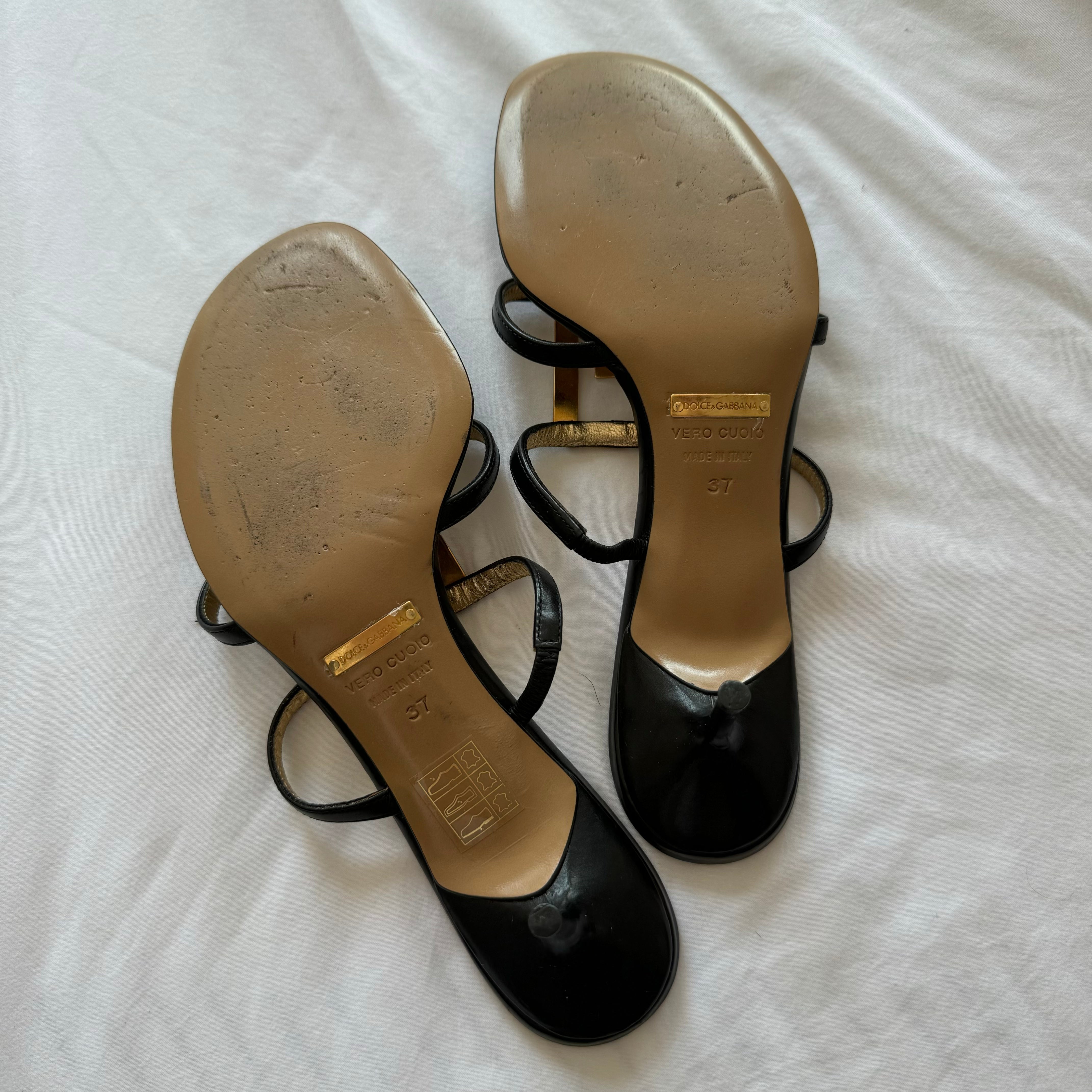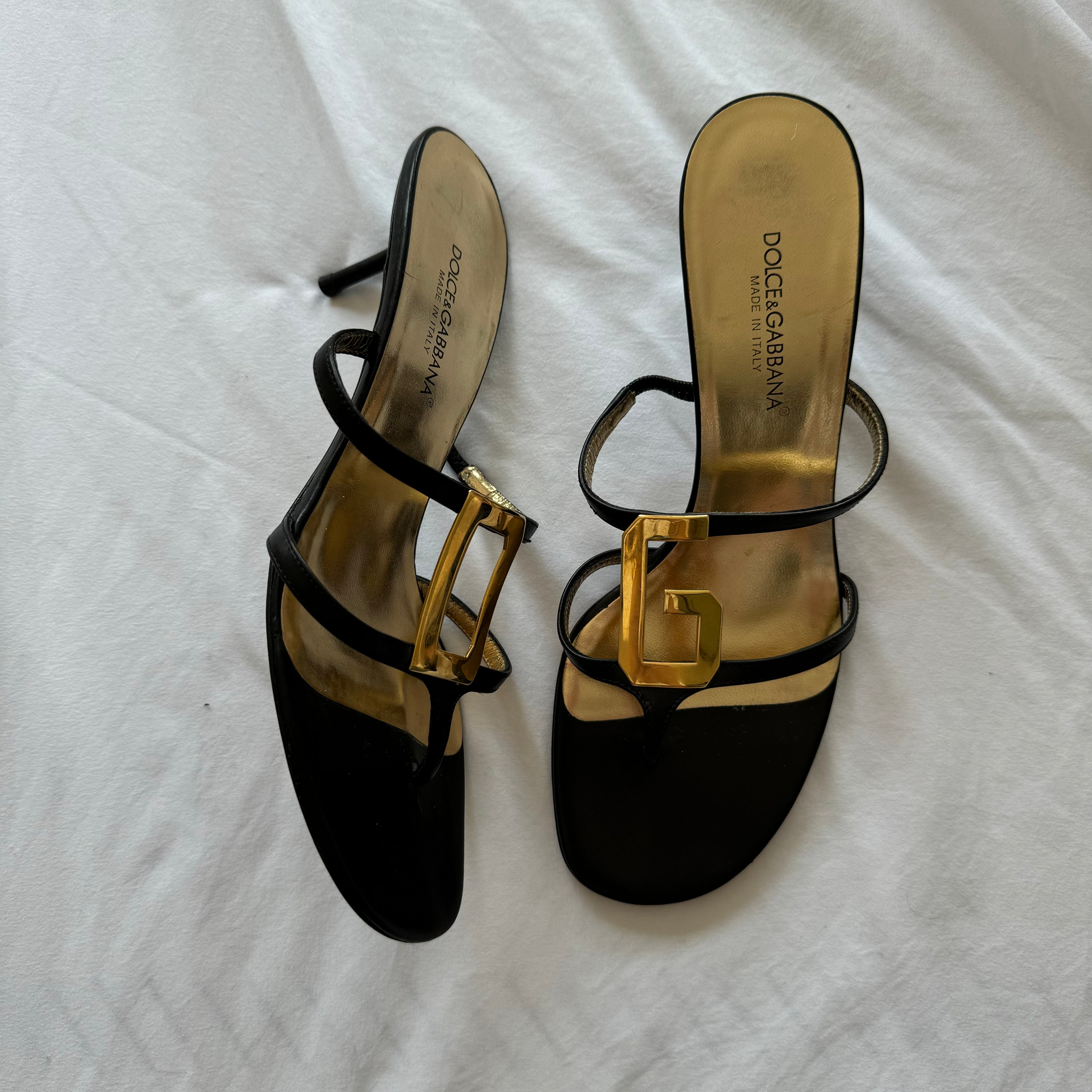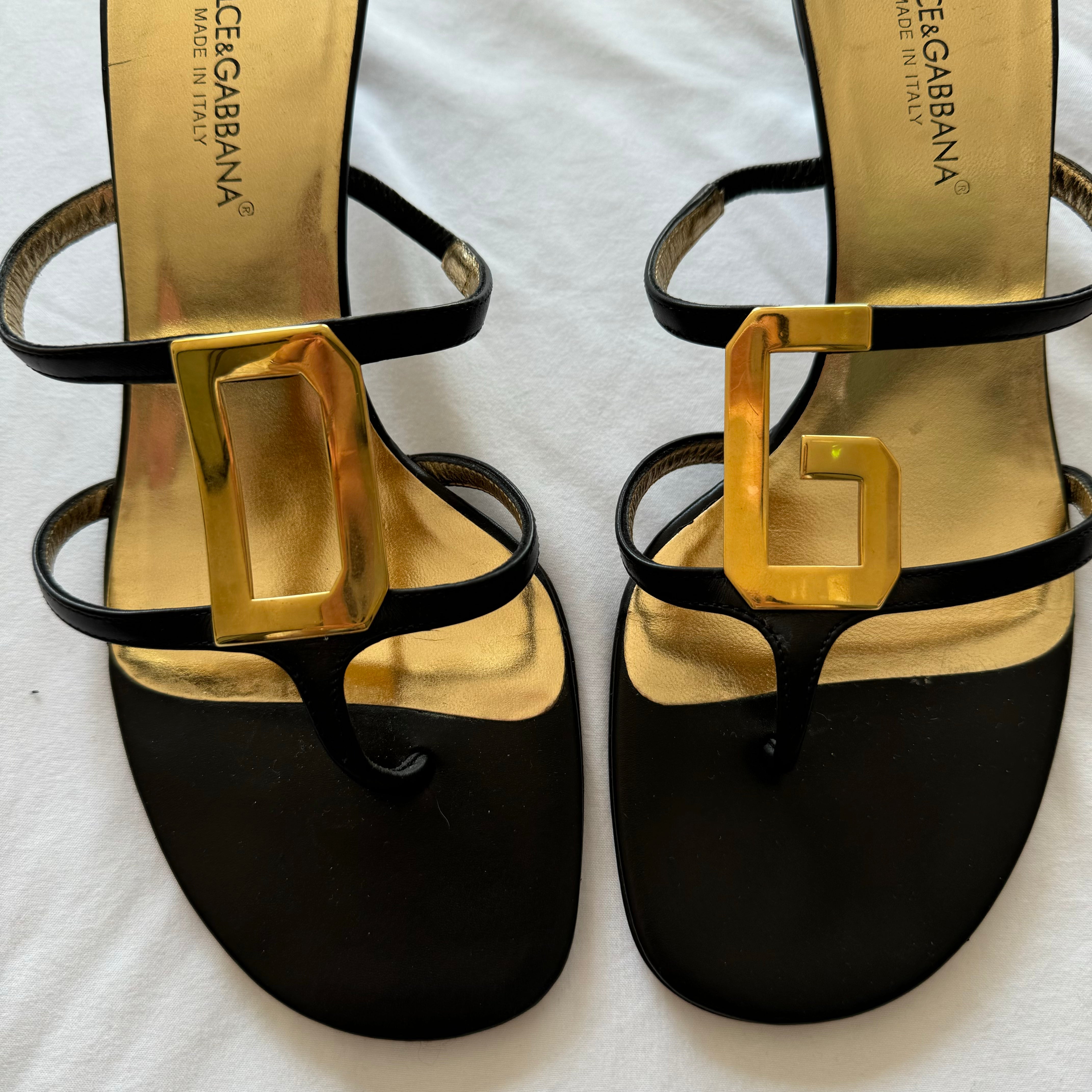 D&G: Vintage Gold "DG" Strappy Kitten Heels (37)
