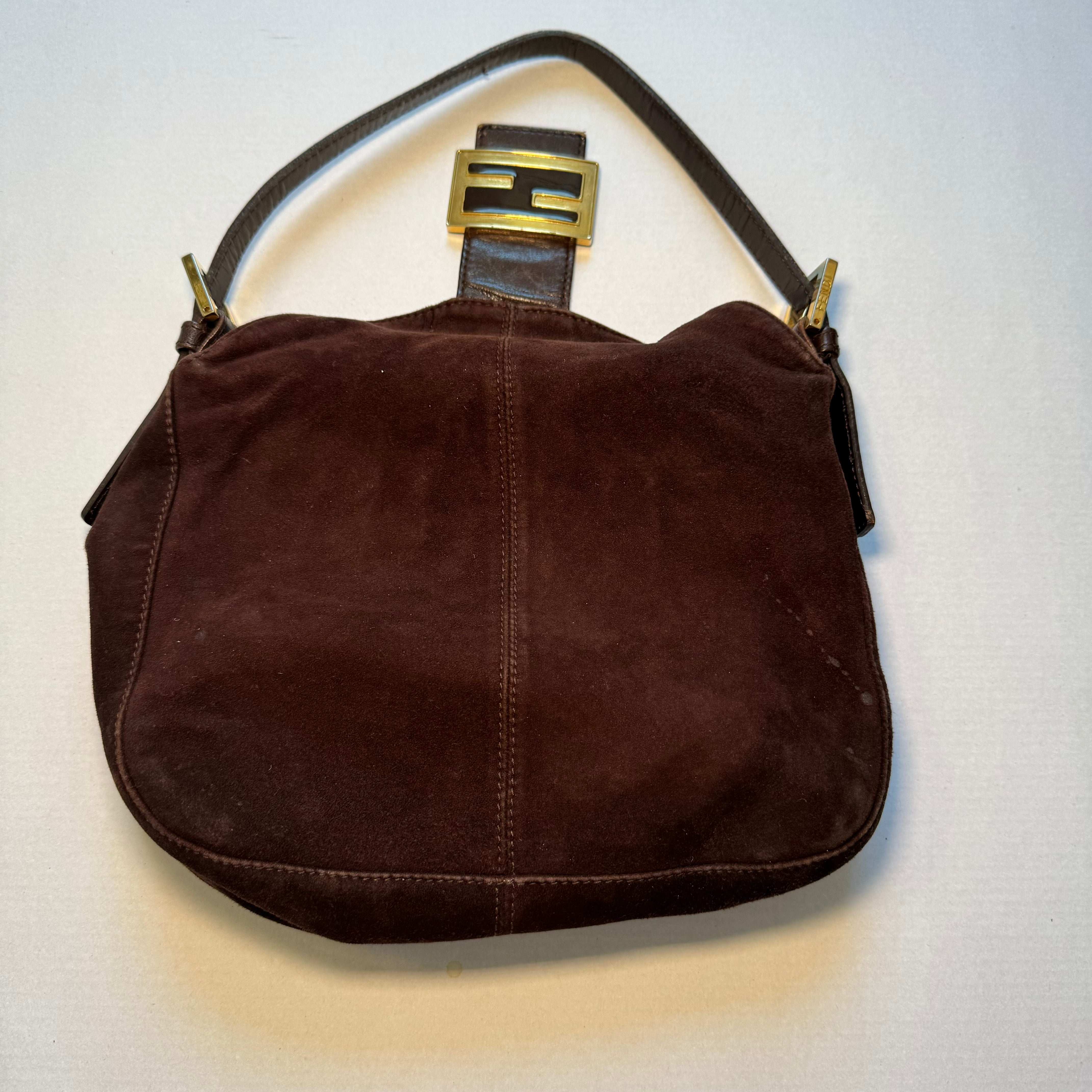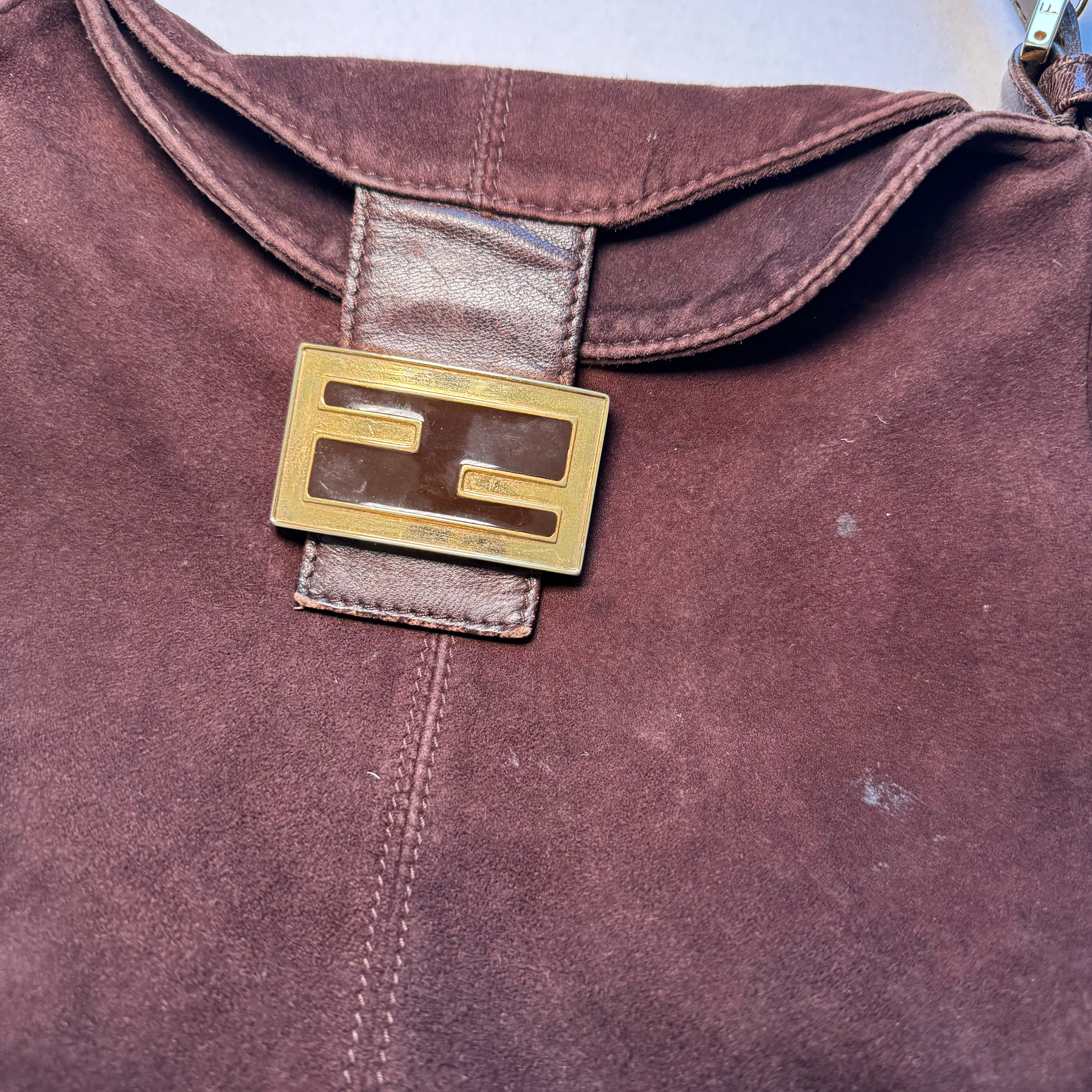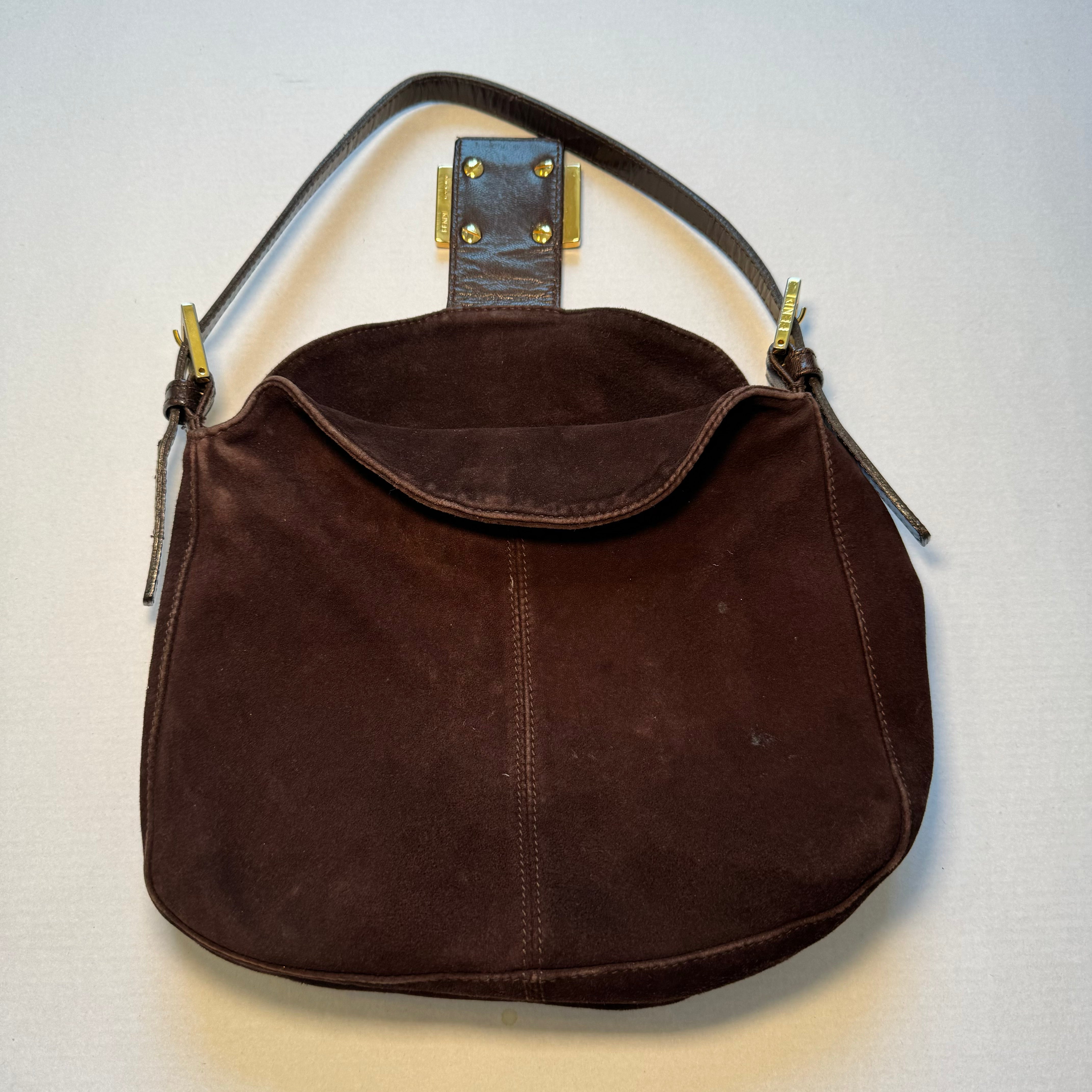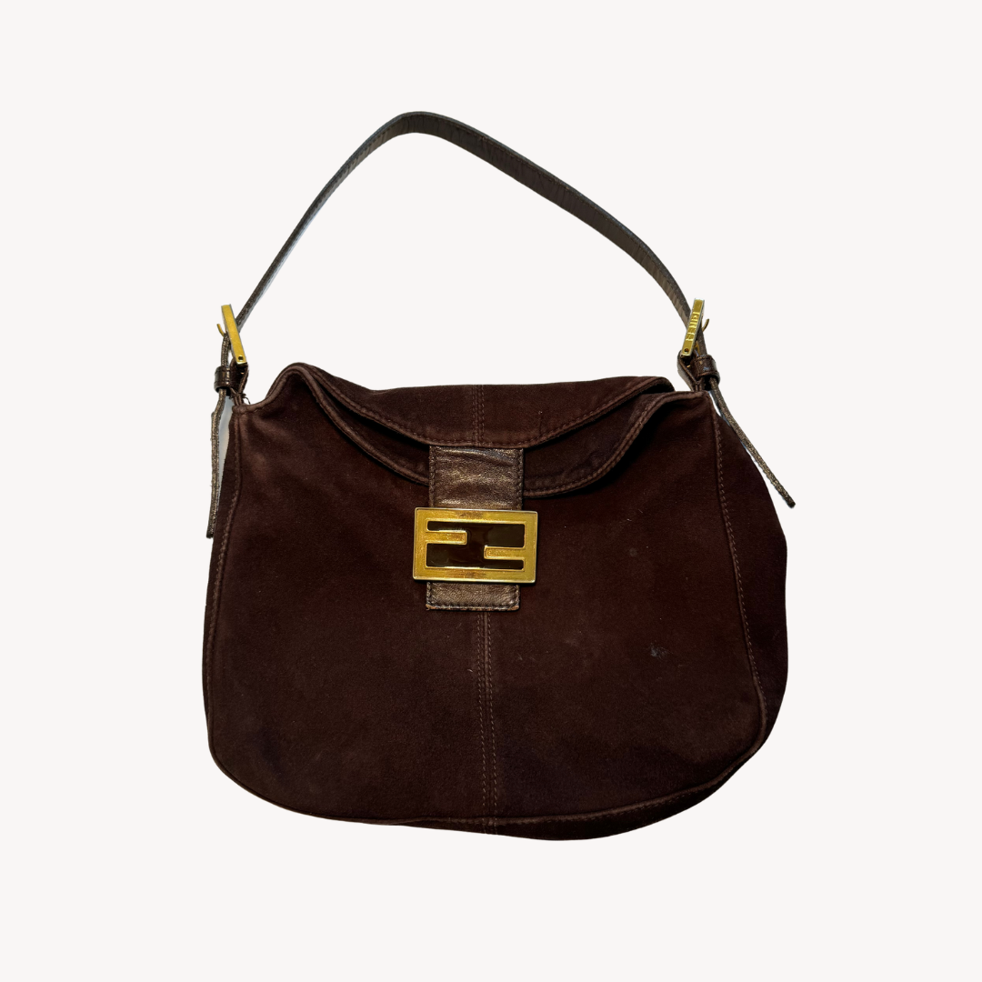 Fendi: Vintage Brown Suede Bucket Baguette
