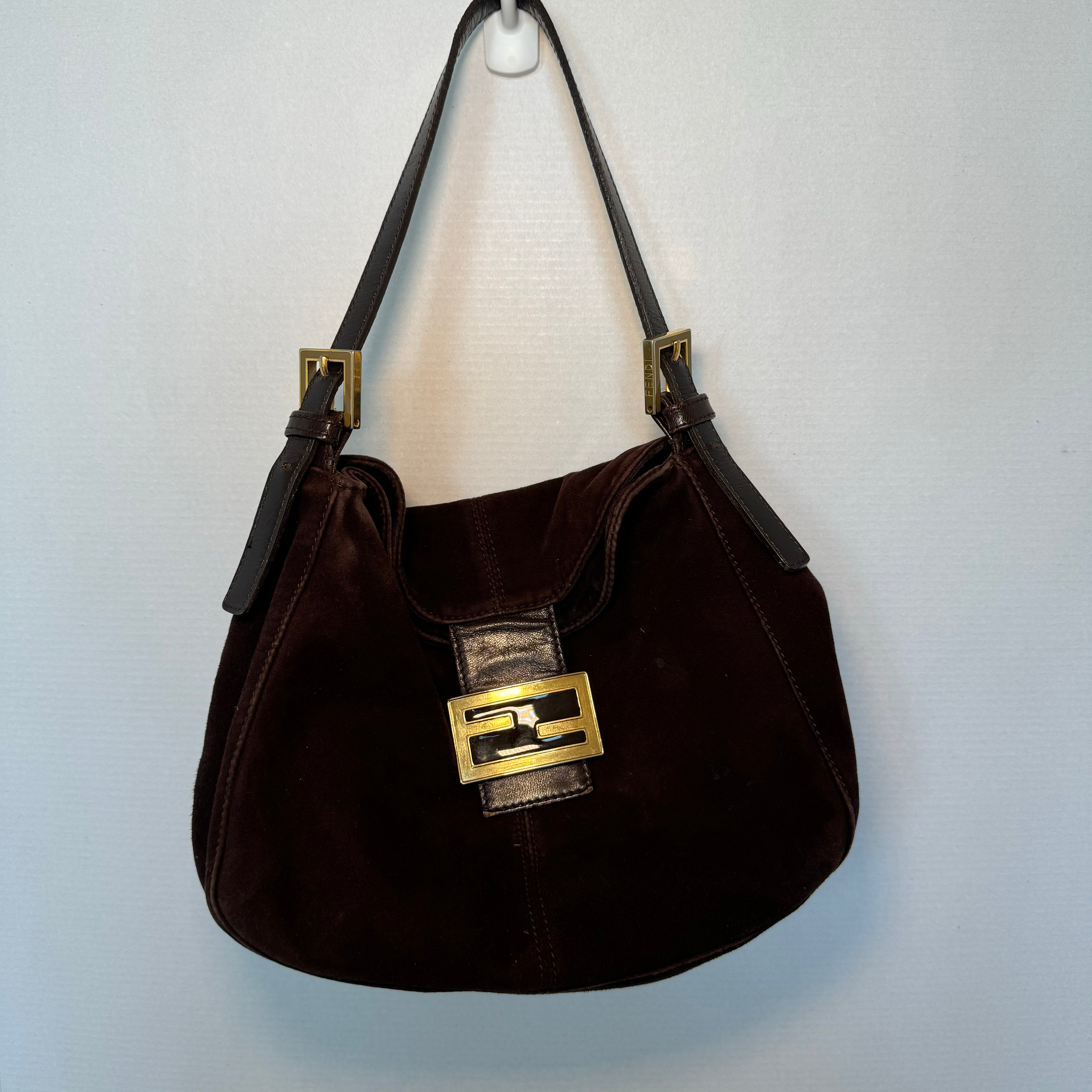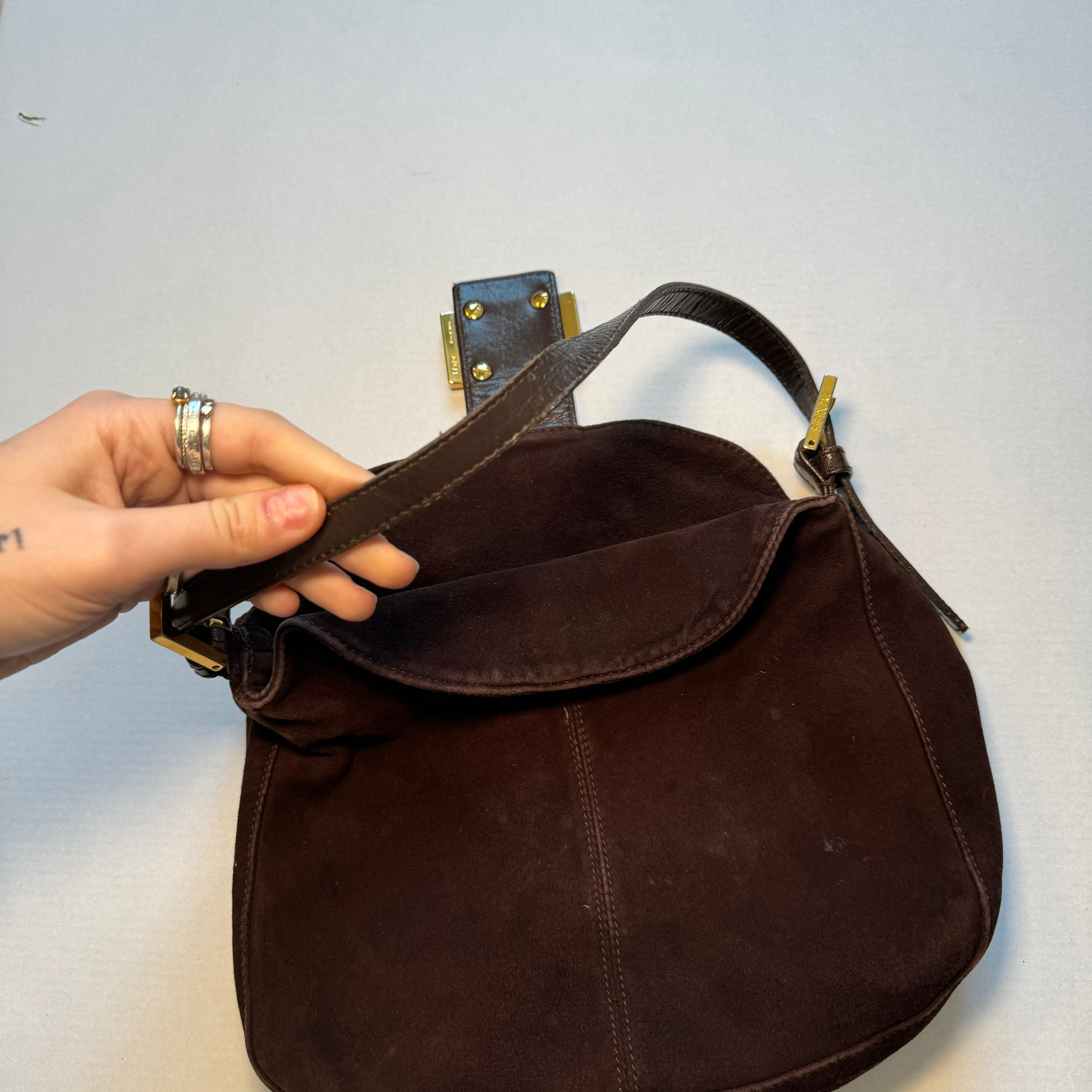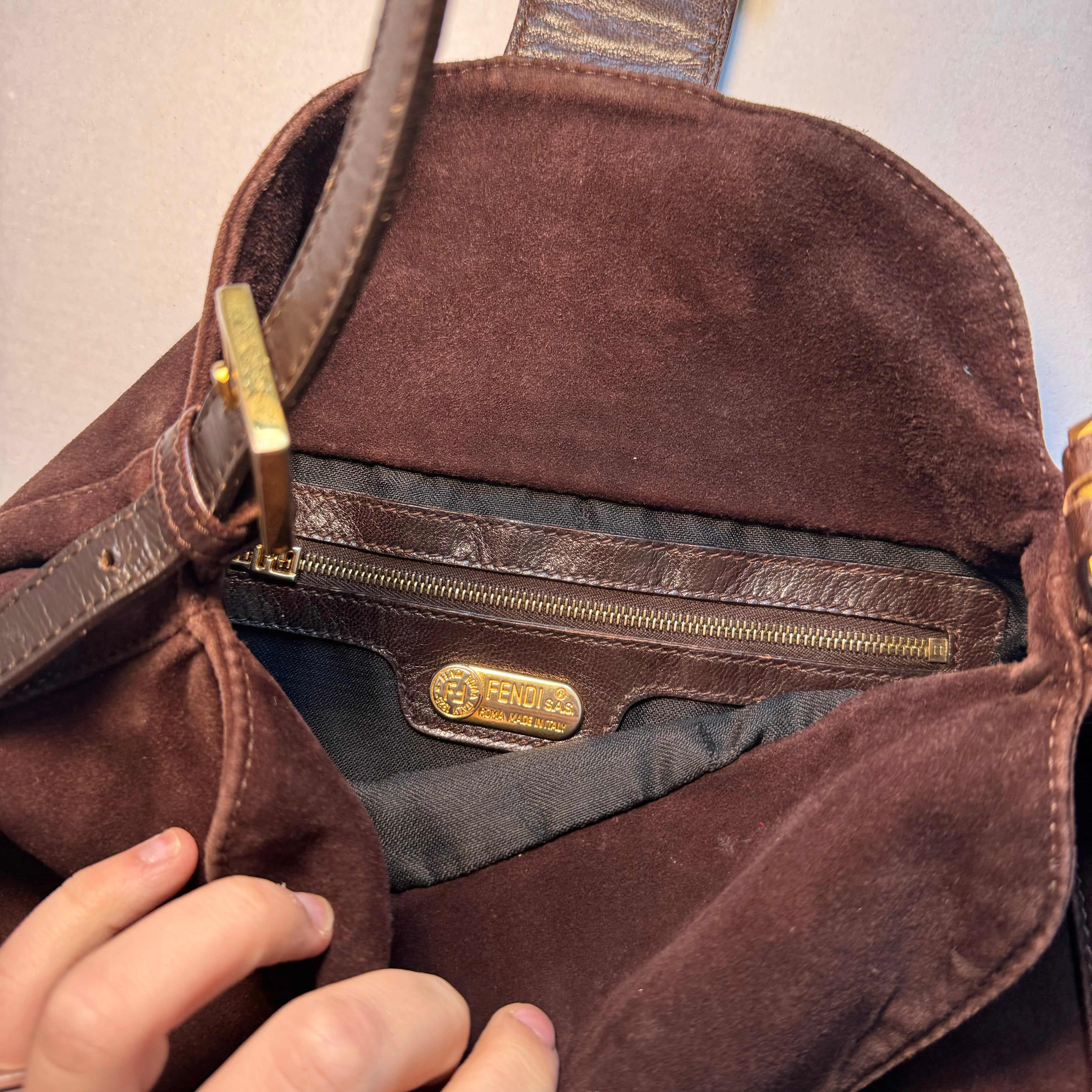 Fendi: Vintage Brown Suede Bucket Baguette