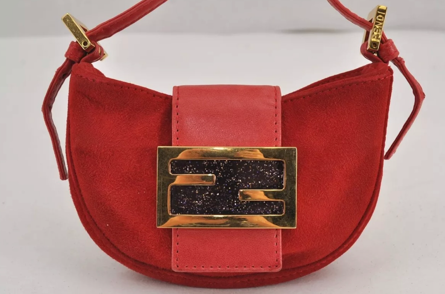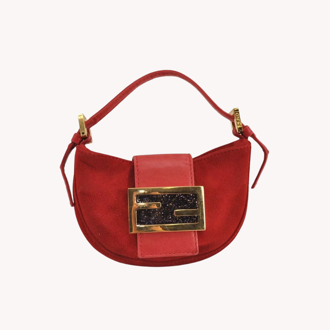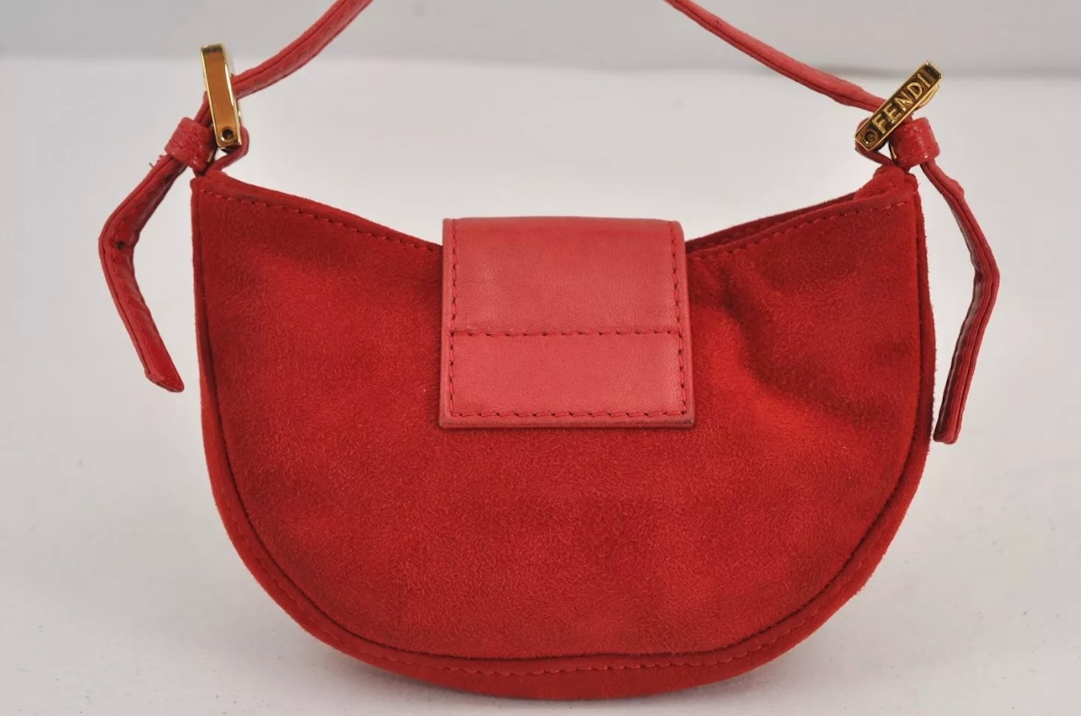 Fendi: Vintage Red Suede Mini Croissant Bag