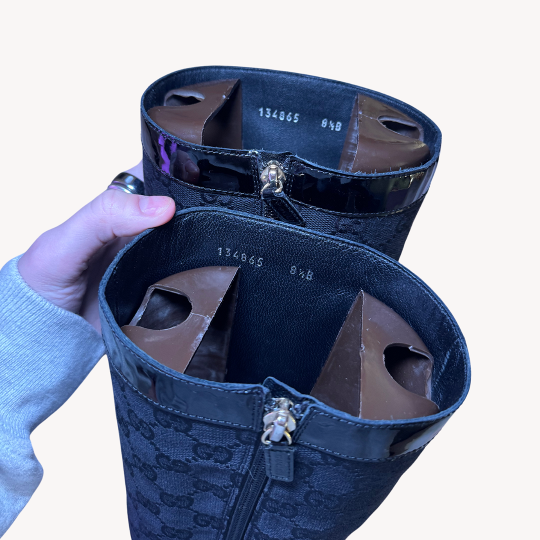 Gucci: Vintage Black Logo Print Knee-High Boots (8.5)