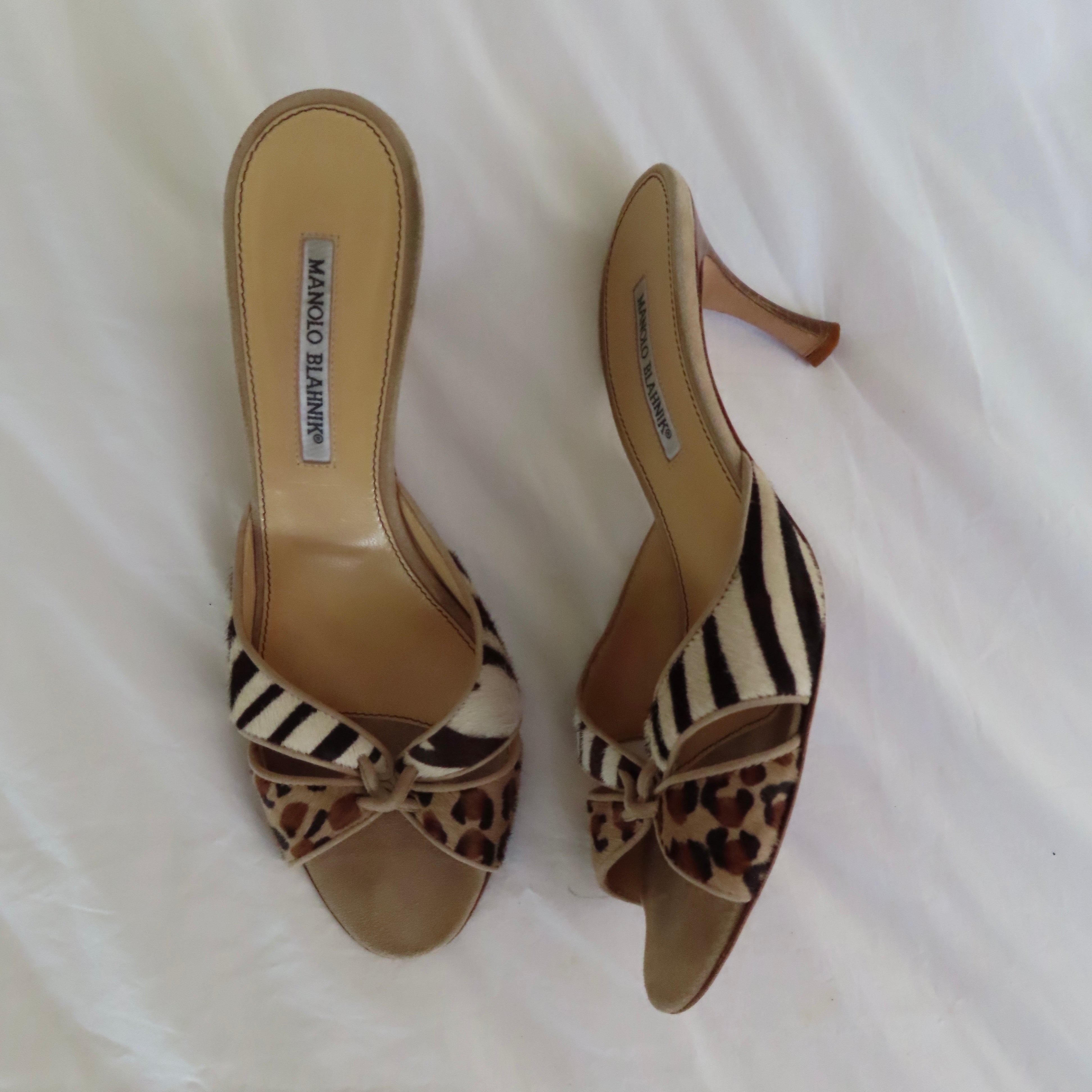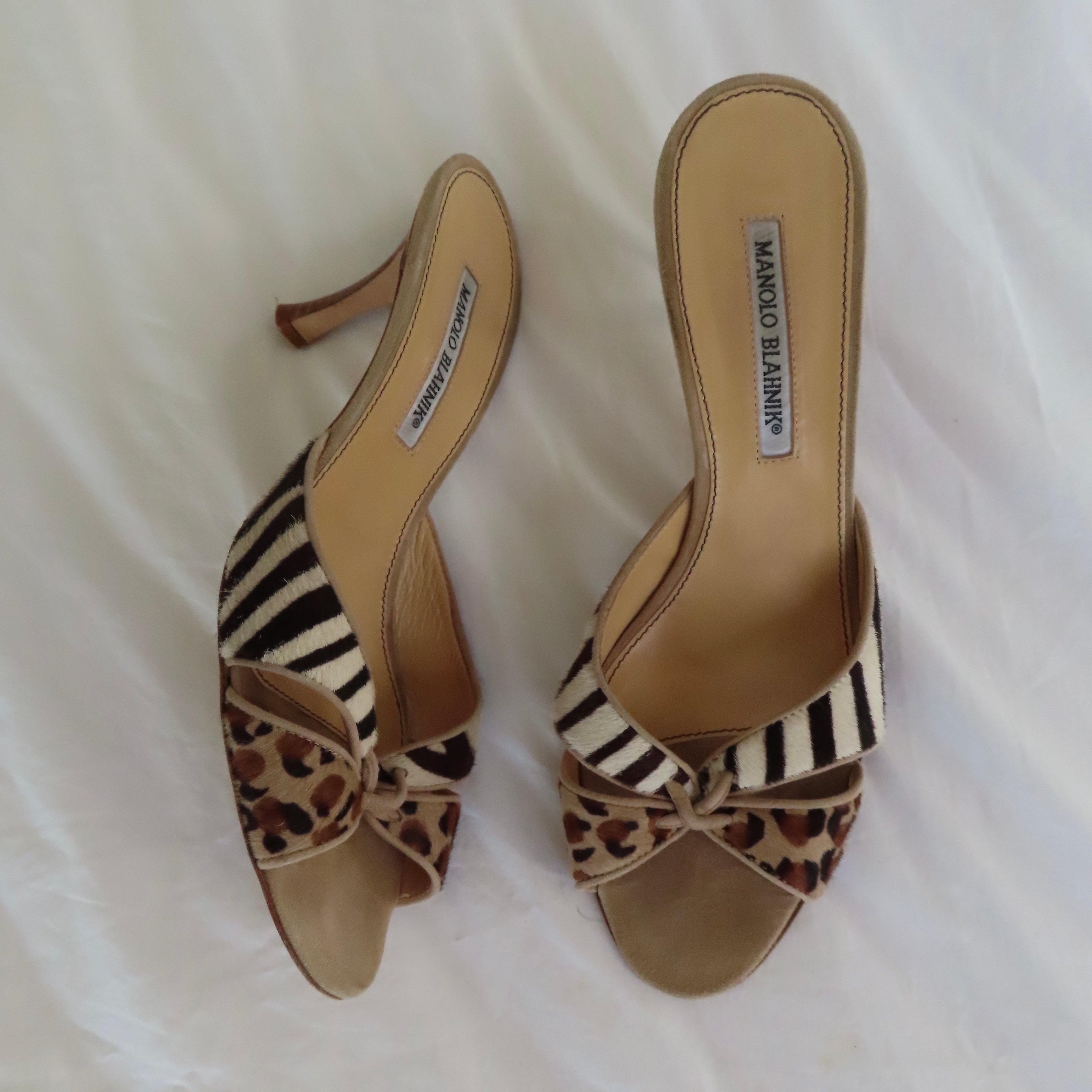 Manolo Blahnik: Vintage Animal Print Pony-Hair Mules (39.5)
