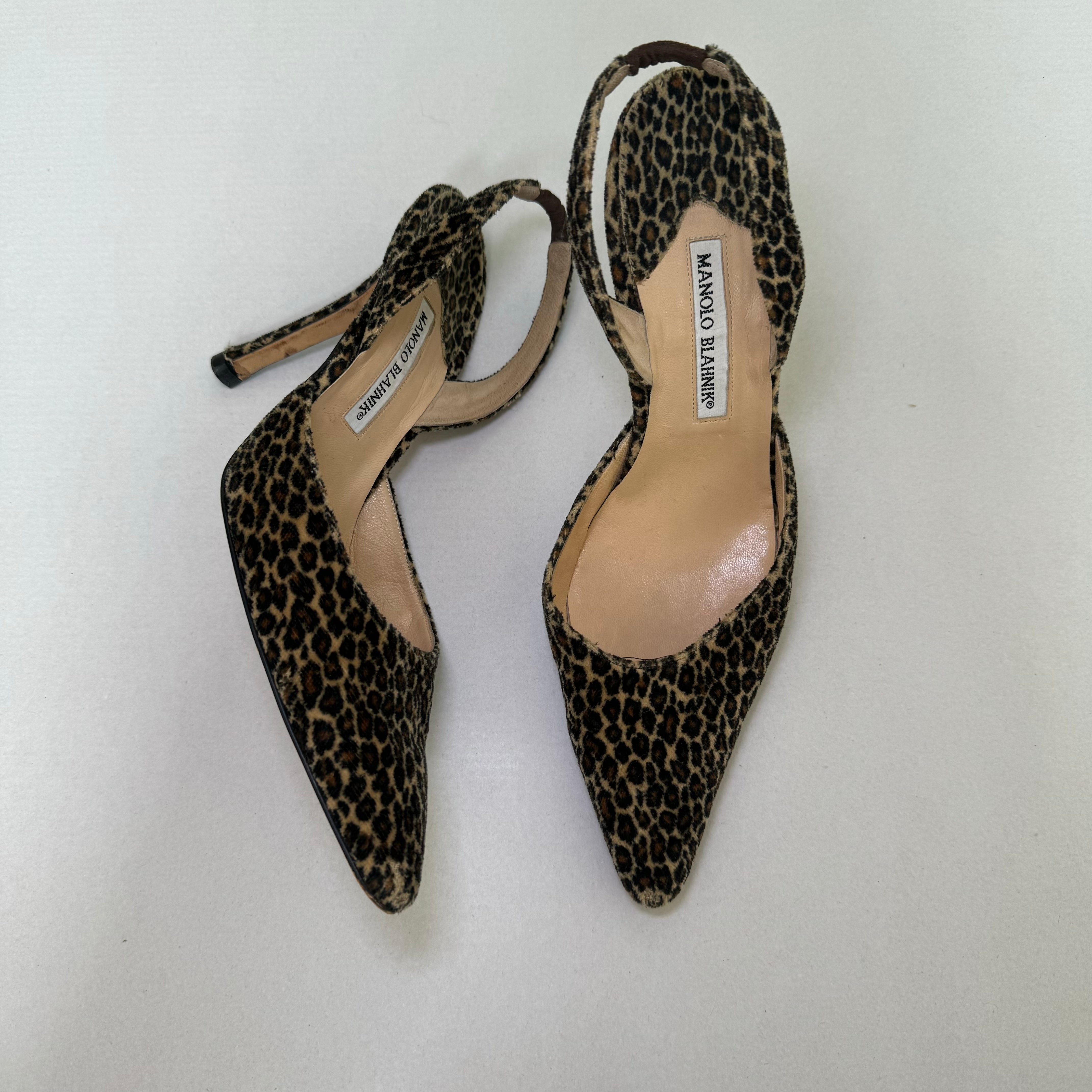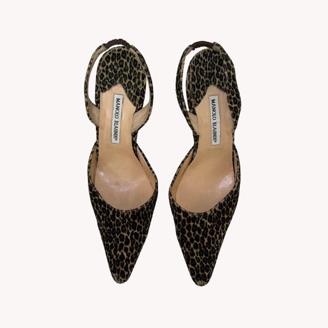 Manolo Blahnik: Vintage Furry Leopard Sling-Back Kitten Heels