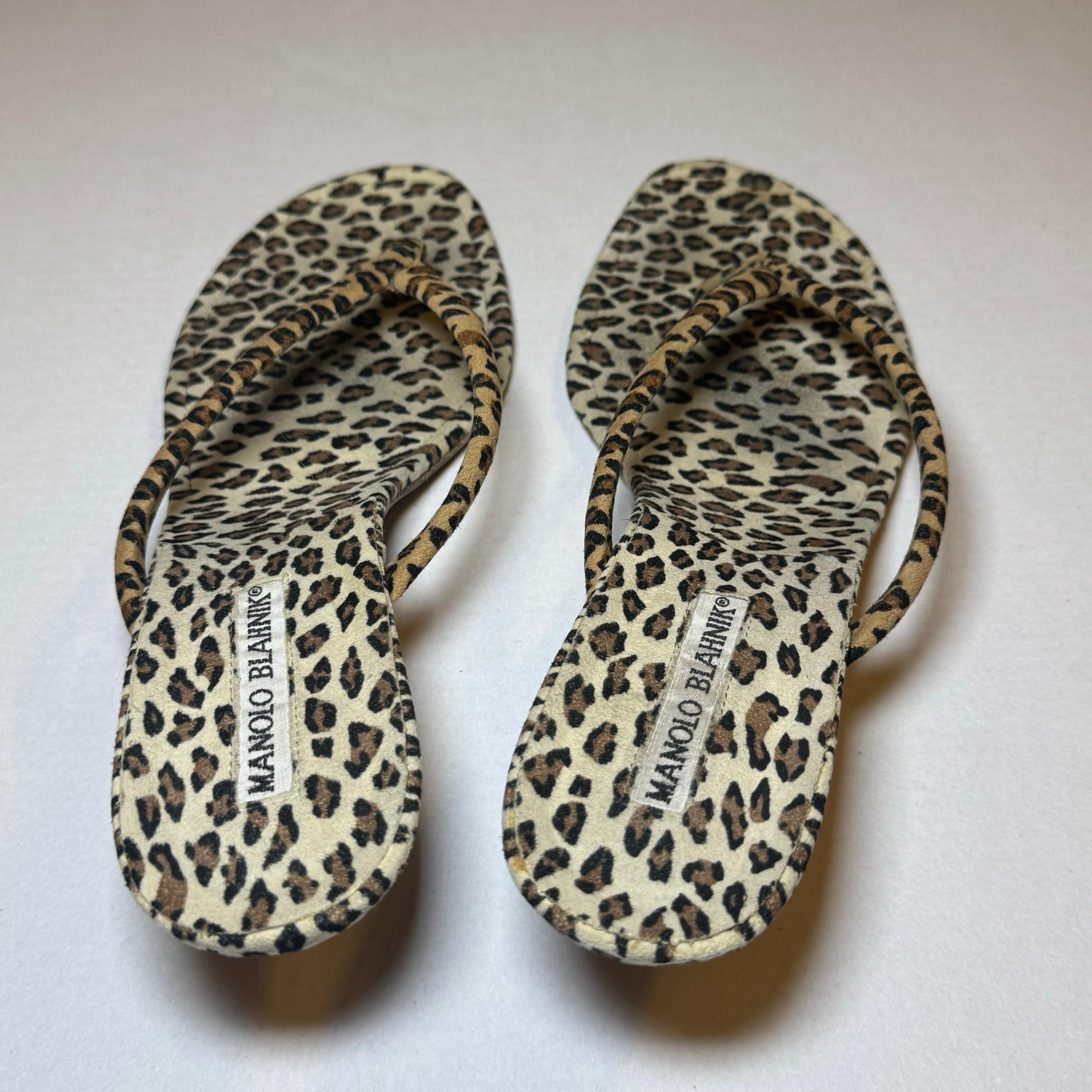 Manolo Blahnik: Vintage Leopard Flip-Flop Kitten Heels